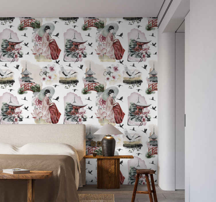 Referentienummer: P6019Breng de serene schoonheid van Japan in uw huis met ons hoofdeinde behang japanse stijl. Dit unieke ontwerp is geïnspireerd op traditionele Japanse kunst en bevat prachtige illustraties in waterverf, die een oosters gevoel uitstralen. De zachte matte kleuren geven een rustgevende sfeer aan elke ruimte, waardoor het perfect is voor zowel moderne als klassieke interieurs.