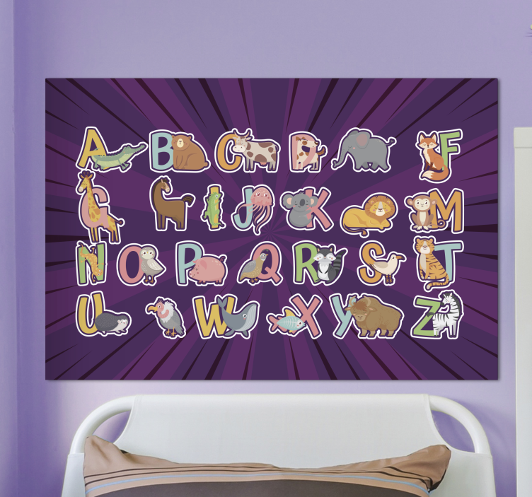 Geef de kinderkamer een speelse en leerzame uitstraling met ons Canvas schilderij kinderen dierenalfabet plezier. Dit prachtige ontwerp bevat een kleurrijk alfabet met schattige dieren die de letters vertegenwoordigen, waardoor leren een feestje wordt! Het is perfect voor een kinderkamer, waar de kleintjes niet alleen kunnen genieten van de vrolijke afbeeldingen, maar ook spelenderwijs het alfabet kunnen leren. Dit schilderij voegt niet alleen kleur toe aan de ruimte, maar stimuleert ook de nieuwsgierigheid en het leren van uw kinderen.