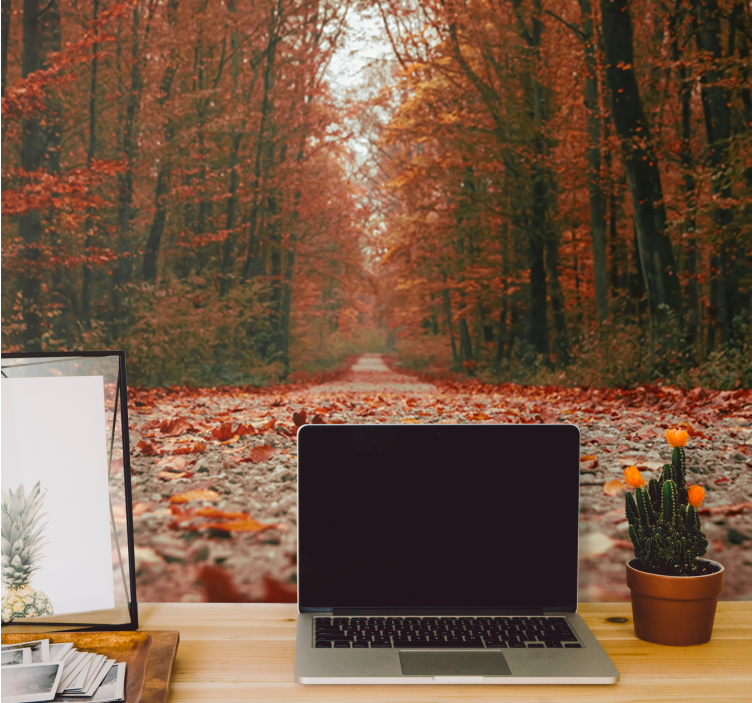 Breng de betovering van de natuur in uw huis met ons Behang bos herfstpad route. Dit prachtige ontwerp toont een schilderachtig pad dat door een weelderig bos slingert, omringd door vallende bladeren in de warme tinten van de herfst. De diepte en de rijke kleuren brengen de magie van de natuur in uw ruimte, waardoor het lijkt alsof u altijd in een serene bosomgeving bent.