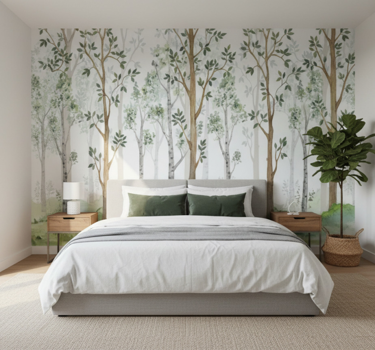Het behang bos minimalistisch botanisch kenmerk behang bos biedt een geweldige manier om een serene sfeer te creëren in elk vertrek. Of je nu een woonkamer, slaapkamer of kantoor wilt opfrissen, dit behang voegt een vleugje natuur toe zonder overweldigend te zijn. Het minimalistische ontwerp zorgt voor een tijdloze uitstraling die perfect samengaat met diverse interieurstijlen. Laat je inspireren door de schoonheid van de natuur en maak van je huis een oase van rust!