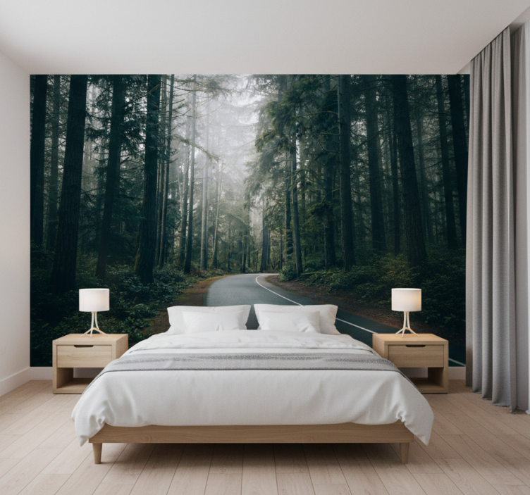 Het behang bos mistige dennenweg behang bos is een uitstekende keuze voor diegenen die op zoek zijn naar een unieke decoratiestijl. Dit fotobehang transformeert uw muren in een levendig landschap, waardoor elke ruimte een uitnodigende en rustgevende uitstraling krijgt. De combinatie van natuurlijke elementen en de zachte mist zorgt voor een gevoel van vrijheid en verbinding met de natuur, wat perfect is voor zowel woon- als werkruimtes.