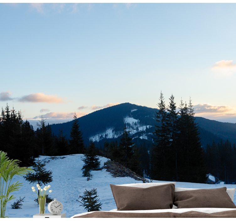 Ontdek de schoonheid van ons foto behang bergen bevroren toplandschap, waar majestueuze bergen omgeven door een betoverend besneeuwd landschap de perfecte sfeer creëren voor uw interieur. Dit ontwerp vangt de serene charme van de Alpen in de winter, met een prachtig uitzicht op sneeuwbedekte bomen en een heldere lucht die de rust van de natuur ademt. Laat uw muren transformeren in een schilderachtig panorama van de Franse natuur.