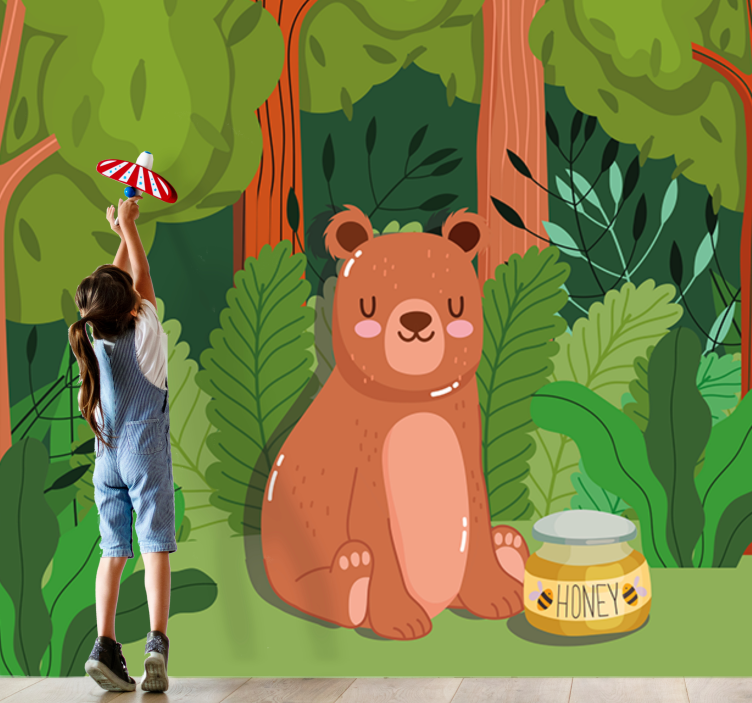 Breng een vleugje magie en natuur in de kinderkamer met ons Foto behang kinderkamer schattige beer kunst. Dit prachtige ontwerp toont een schattige beer te midden van een betoverend woud vol bloemen en honing, perfect voor kleine avonturiers. De illustratie is niet alleen een lust voor het oog, maar ook een uitnodiging voor kinderen om hun verbeelding te gebruiken. Laat de dieren en de natuur de ruimte vullen met vreugde en creativiteit!
