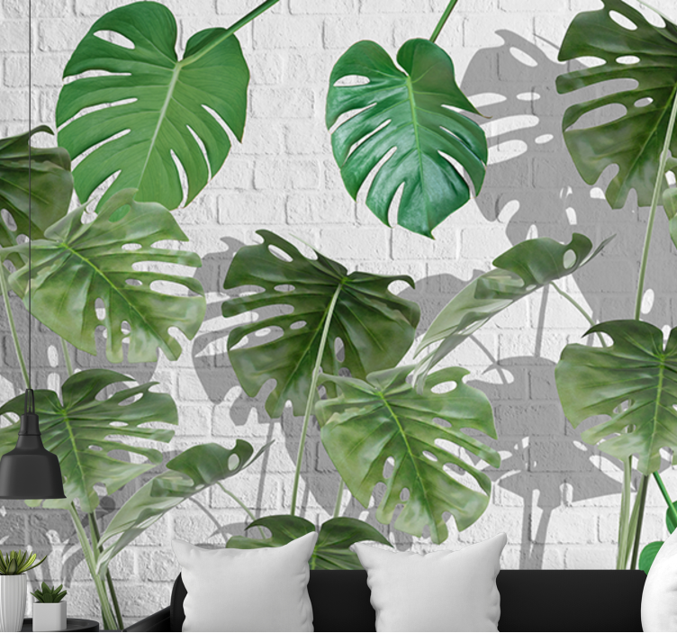 Transformeer je interieur met het prachtige Fotobehang natuur monstera bladeren arrangement! Dit ontwerp is een visueel feest met weelderige groene bladeren die een tropische sfeer uitstralen, perfect gecombineerd met een subtiele bakstenen achtergrond. De combinatie van natuurlijke elementen en een moderne uitstraling zorgt voor een verfrissende ambiance in elke ruimte.