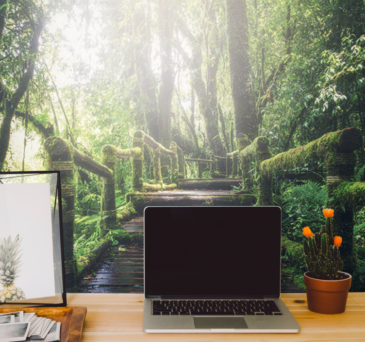 Ervaar de serene schoonheid van de natuur met ons Fotobehang natuur weelderig bospad. Dit prachtige ontwerp laat een pad zien dat zich een weg baant door een betoverend woud, omringd door majestueuze bomen en een warme gloed van zonlicht. De details van het mos en de speelse lichtval brengen een gevoel van rust en harmonie in uw ruimte. Dit fotobehang is perfect voor iedereen die de schoonheid van de natuur naar binnen wil halen.