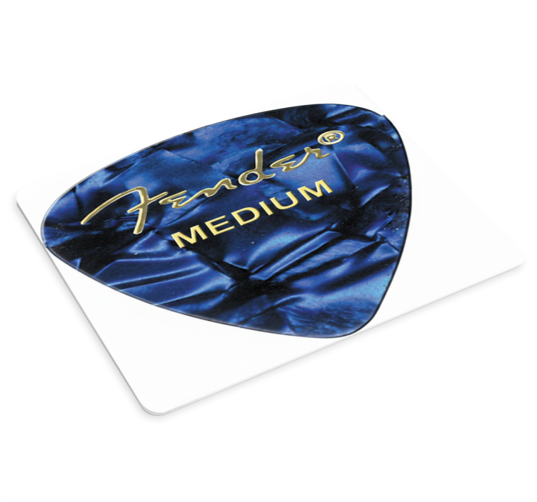 Muismat met blauwe fender gitaarplectrum