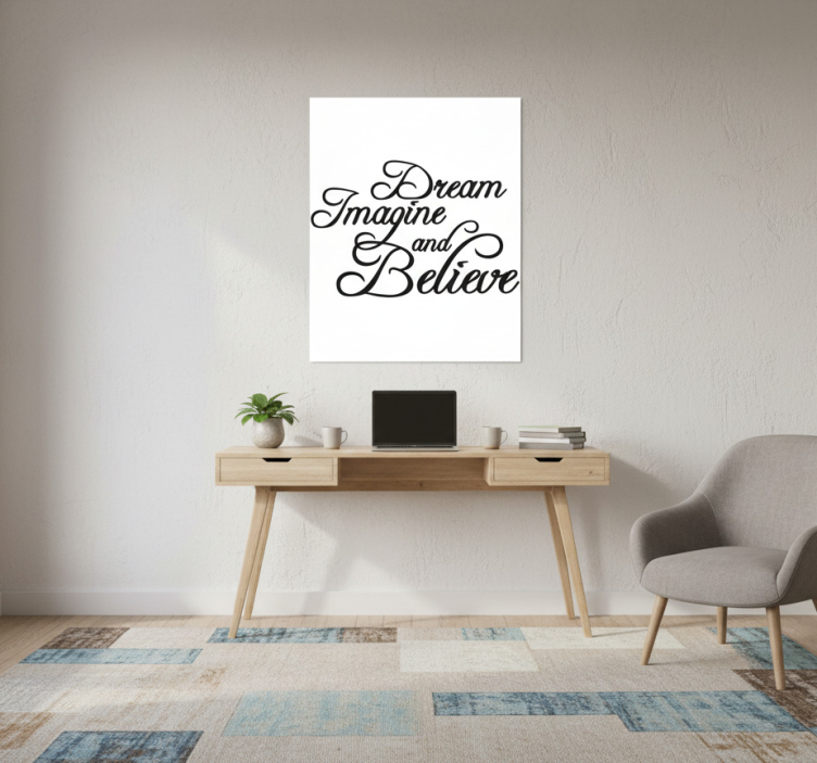 Een Kantoor poster droom, stel je voor en geloof kantoor poster is meer dan alleen decoratie; het is een bron van inspiratie. Het herinnert je eraan om te dromen en te geloven in je mogelijkheden. Deze poster is perfect om een creatieve en motiverende sfeer te creëren in je kantoor, waardoor je dagelijks wordt aangemoedigd om je doelen na te jagen. Laat deze poster je helpen om je visie en dromen zichtbaar te maken!