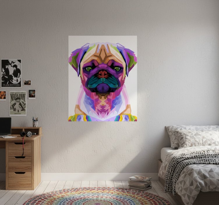 Referentienummer: G765Breng een vleugje kleur en karakter in uw interieur met deze Mooie poster woonkamer pop art mopshond. Het ontwerp toont een levendige pop art stijl, waarin de mopshond op een speelse manier wordt afgebeeld. De poster heeft een 180g/m2 grammage, waardoor deze ideaal is voor posters. Met een halfmatte finish zonder reflecties en hoge kleurintensiteit zorgt deze afdruk ervoor dat de kleuren sprankelen en de afbeelding tot leven komt in elke ruimte!