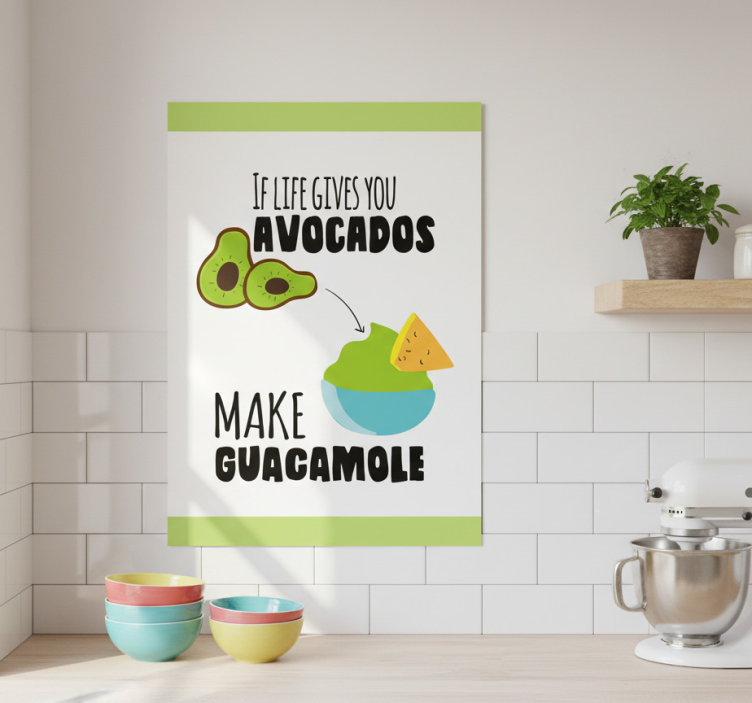 Een Poster keuken grappige avocado woordspeling is de perfecte manier om een glimlach op het gezicht van uw gasten te toveren. Deze poster voegt niet alleen kleur toe aan uw keuken, maar creëert ook een vrolijke sfeer die uitnodigt tot gezelligheid en creativiteit. Het is een geweldige manier om een persoonlijk tintje aan uw interieur te geven en het gesprek op gang te brengen over de grappige woordspeling. Laat uw keuken stralen met deze unieke toevoeging!