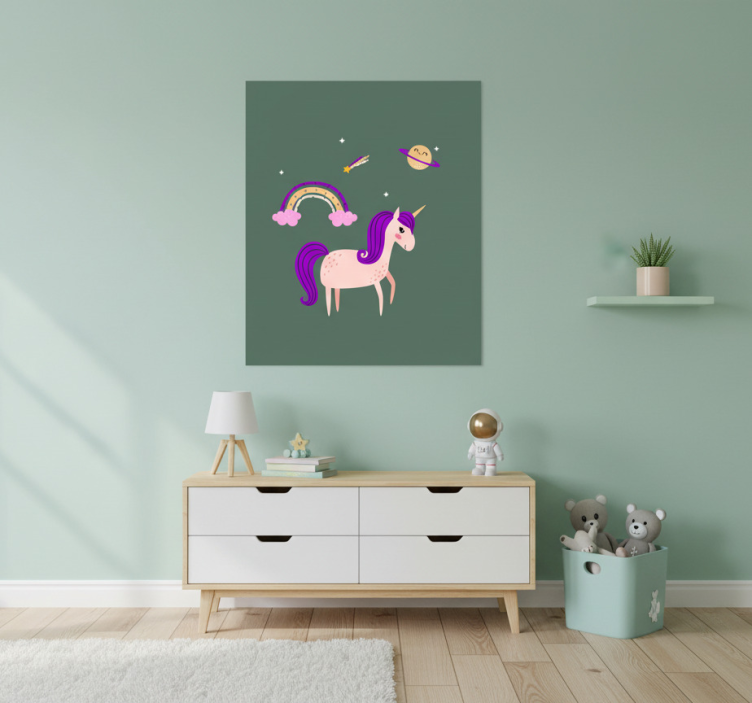 De Poster kinderkamer artistieke eenhoorns op groene achtergrond is de perfecte keuze om een sprankelende sfeer te creëren. Deze poster voegt niet alleen kleur toe aan de ruimte, maar stimuleert ook de verbeelding van uw kind. Een kamer versierd met deze poster wordt een plek vol dromen en fantasieën, waar elk kind zich kan verliezen in de magie van de eenhoornwereld!