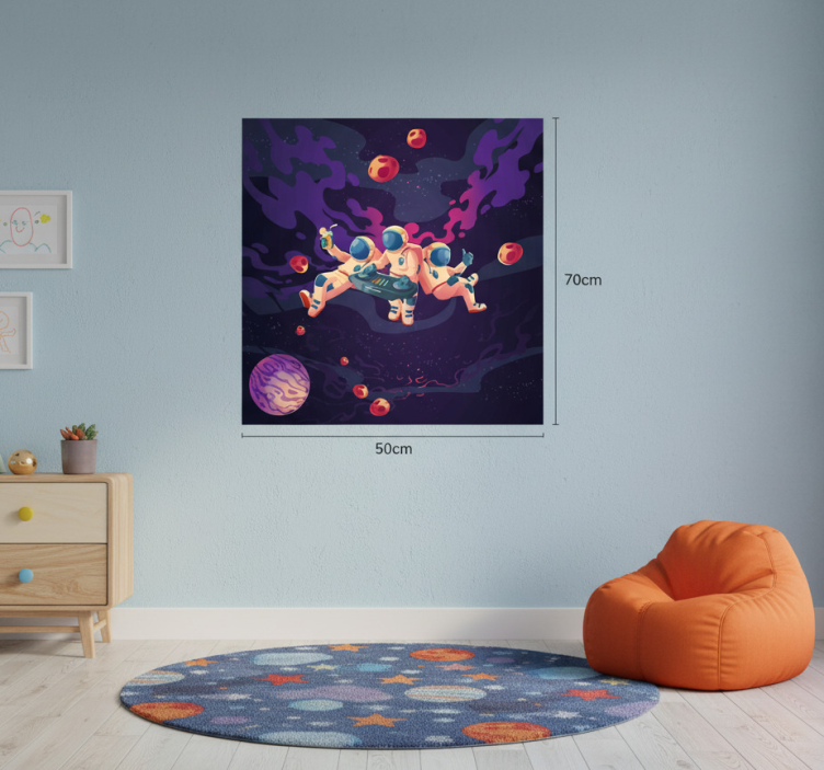 Breng een sprankje avontuur in de kinderkamer met de Poster kinderkamer jammende cartoonastronauten. Dit schattige ontwerp toont vrolijke astronauten die muziek maken tussen de sterren, met een levendige kleurenpracht die elke muur tot leven brengt. De 180g/m2 grammage zorgt voor een stevige kwaliteit, terwijl de halfmatte finish zonder reflecties zorgt voor een prachtig visueel effect. De hoge kleurintensiteit maakt deze poster tot een echte blikvanger in de ruimte van uw kleintje!