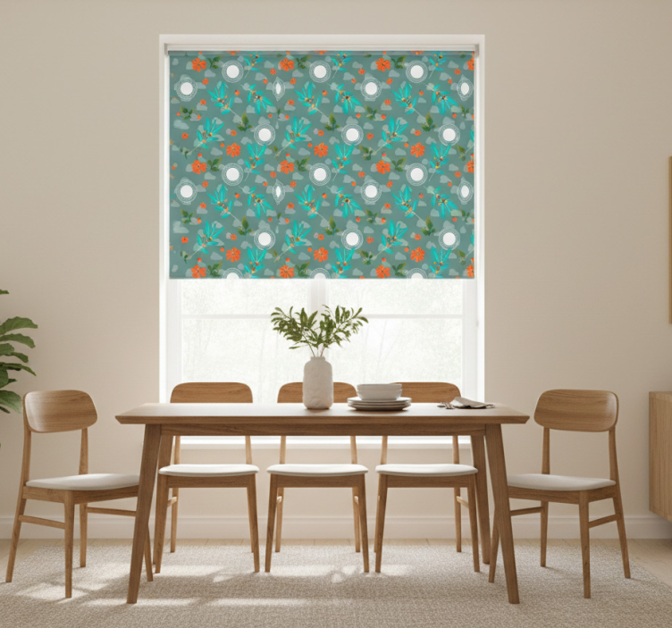 Eetkamer rolgordijn bloemig geometrisch