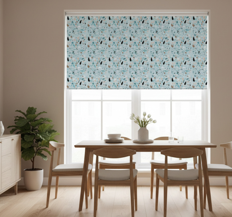Eetkamer rolgordijn lichtblauw terrazzo effect