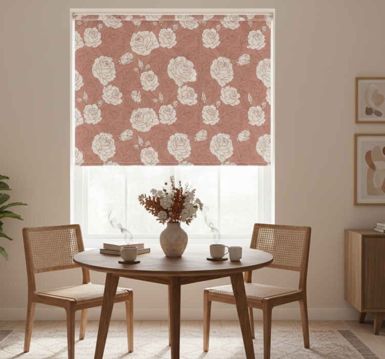 Eetkamer rolgordijn terracotta grote rozen