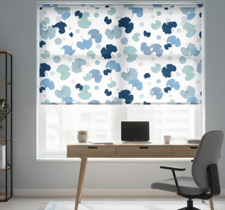 Dit kantoor rolgordijn blauwe ginkgo blad is een prachtige toevoeging aan uw ruimte! Het ontwerp kenmerkt zich door een stijlvolle afdruk van het ginkgo blad, dat een subtiele, maar levendige flair aan uw interieur toevoegt. De zachte blauwe tinten zorgen voor een rustgevende sfeer, waardoor dit rolgordijn perfect is voor zowel thuiswerkplekken als professionele omgevingen. Het strakke en moderne ontwerp maakt het een ideale keuze voor elk kantoor.