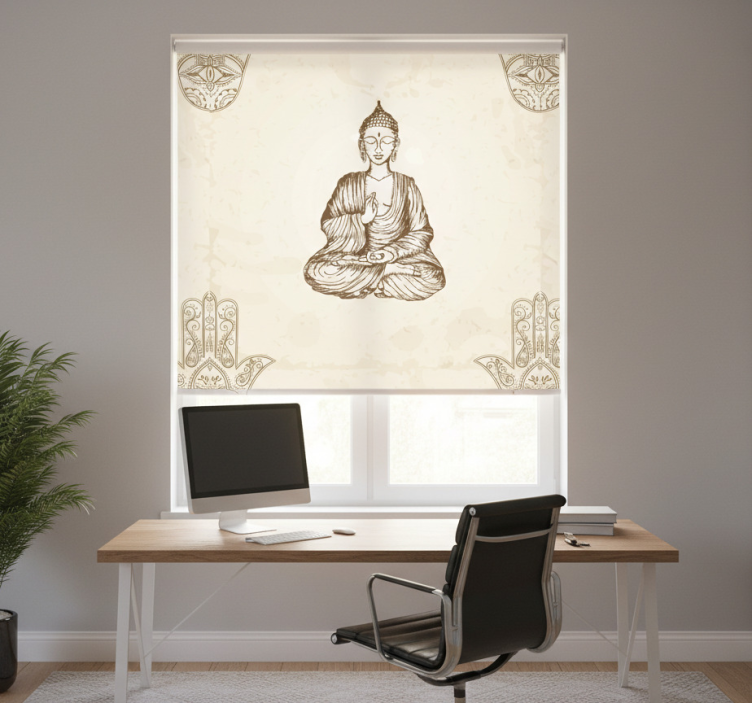 Het kantoor rolgordijn buddha hamsa hand symbool is een prachtig ontworpen raambekleding dat niet alleen functionaliteit biedt, maar ook een uniek decoratief element aan uw kantoor toevoegt. Met zijn betoverende hamsa hand symbool en de serene uitstraling, brengt dit rolgordijn een gevoel van rust en balans in uw werkomgeving. De combinatie van esthetiek en praktische voordelen maakt het een ideale keuze voor elk kantoor.