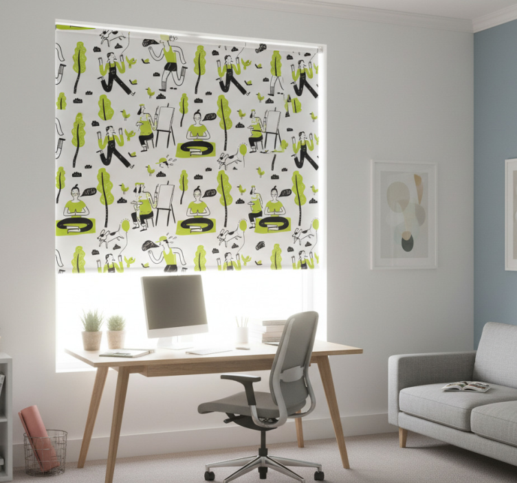 Kantoor rolgordijn gezonde levensstijl doodle set