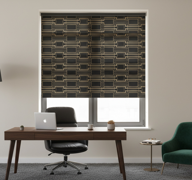 Kantoor rolgordijn goudkleurige lijst kunstpatroon