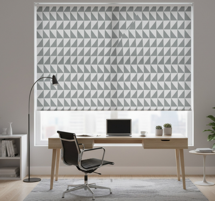 Referentienummer: E7255Beschrijving van het Kantoor rolgordijn grijs geometrisch patroon
