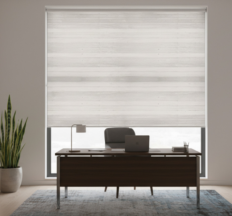 Kantoor rolgordijn grijze elegante rustieke houten planken