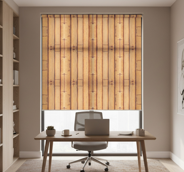 Kantoor rolgordijn met bamboe houtlook effect