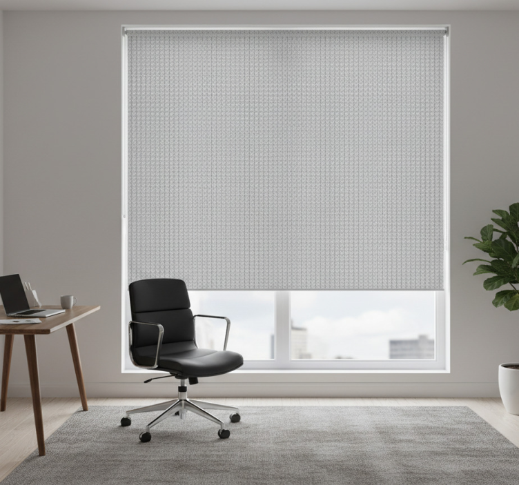 Kantoor rolgordijn minimalistisch grijs verticaal patroon