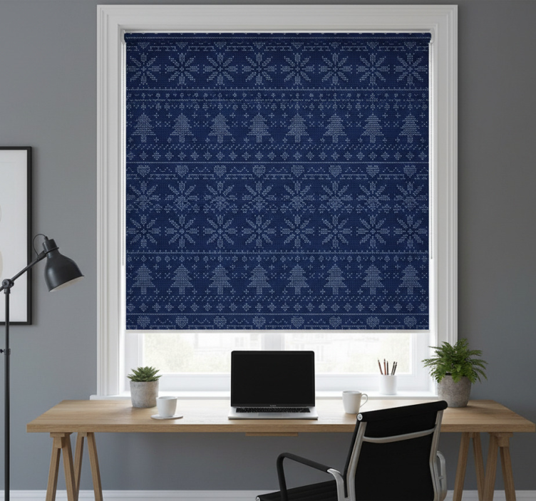 Kantoor rolgordijn navyblauw kerst gebreid patroon