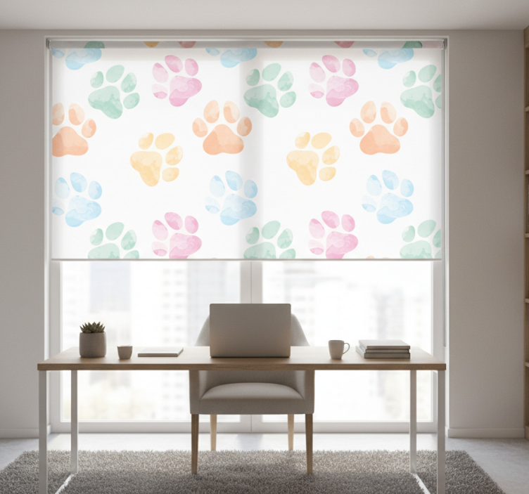 Kantoor rolgordijn pastelkleuren huisdierpootjes
