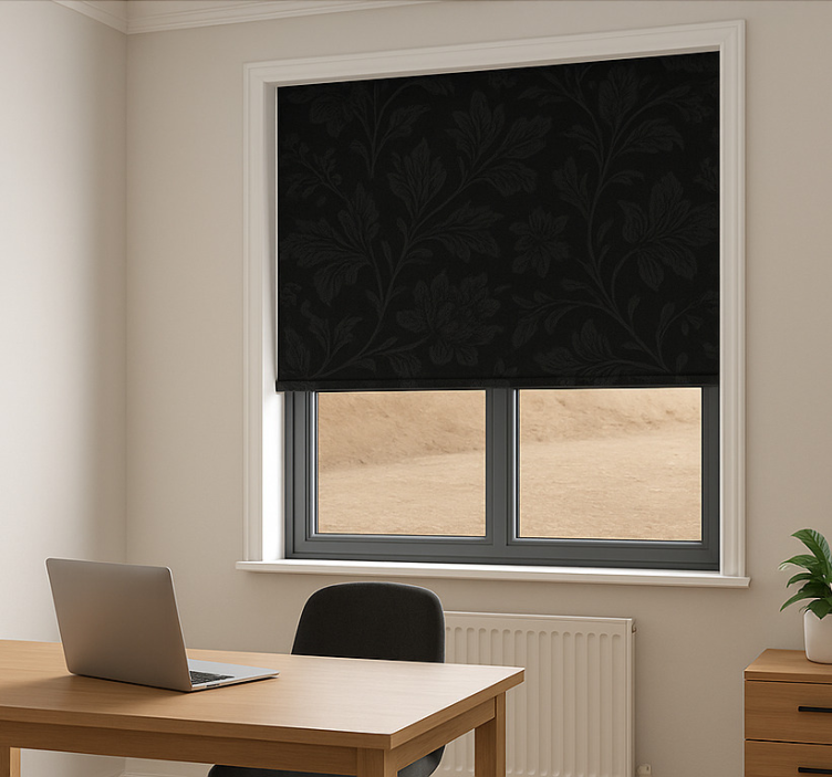Het Kantoor rolgordijn rustgevend zwart voegt een elegante en rustgevende uitstraling toe aan uw kantoorruimte. Het strakke, moderne ontwerp in diepzwart zorgt ervoor dat het niet alleen functioneel is, maar ook een prachtig decoratief element vormt. Dit rolgordijn beschermt uw interieur tegen fel zonlicht, biedt privacy en helpt bij het reguleren van de kamertemperatuur, waardoor uw kantoor een comfortabele en stijlvolle omgeving wordt. Met de mogelijkheid om in drie verschillende texturen te kiezen, kunt u eenvoudig de juiste sfeer creëren die past bij uw persoonlijke stijl en voorkeuren!