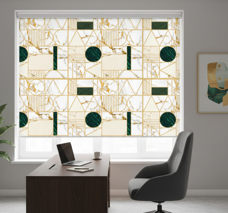 Referentienummer: E7300Ontdek het unieke ontwerp van ons kantoor rolgordijn witte marmer geometrisch