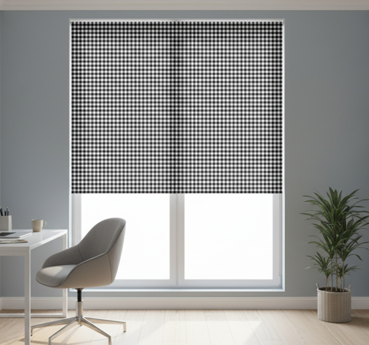 Kantoor rolgordijn zwart-wit ruitpatroon