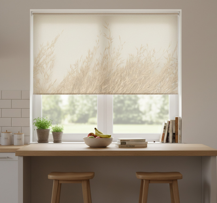 Referentienummer: E8346Ontdek ons unieke Keuken rolgordijn bewegende planten in de wind, dat perfect de schoonheid van de natuur in uw keuken vastlegt. Dit rolgordijn heeft een prachtig ontwerp met levendige kleuren en een motief dat de beweging van planten in de wind weergeeft. Dankzij de hoogwaardige materialen biedt het niet alleen een esthetische meerwaarde, maar ook praktische voordelen, zoals eenvoudige onderhoudswijze en uitstekende functionaliteit.