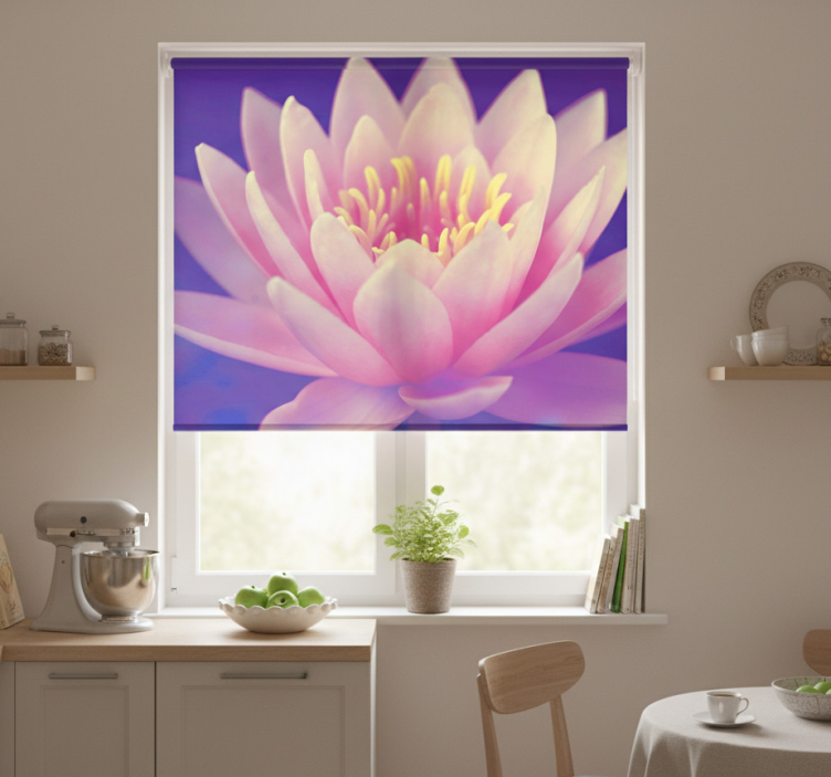 Keuken rolgordijn roze loto bloem