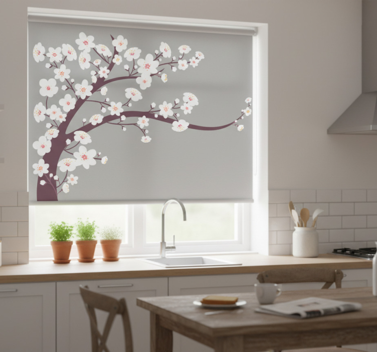 Dit keuken rolgordijn witte bloemen op grijze achtergrond voegt een verfijnde en charmante uitstraling toe aan uw keuken. Het grafische ontwerp van witte bloemen die elegant contrasteren met een grijze achtergrond zorgt voor een frisse en moderne uitstraling. Dit rolgordijn is niet alleen een functioneel element, maar ook een stijlvol decoratief accent dat uw keuken transformeert in een uitnodigende ruimte.
