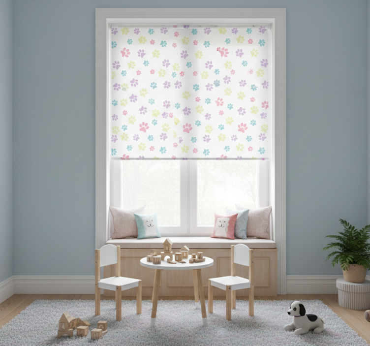 Kinderkamer rolgordijn fantastische kleurrijke hondenpootjes
