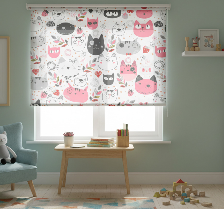 Ontdek het Kinderkamer rolgordijn geïllustreerde katten, een prachtig ontworpen rolgordijn dat de kinderkamer transformeert in een speelse en vrolijke ruimte. Met schattige illustraties van katten in verschillende poses, zorgt dit rolgordijn voor een levendige uitstraling die kinderen zal betoveren. De combinatie van kleurrijke afbeeldingen en praktische functionaliteit maakt dit rolgordijn een ideale keuze voor elke kinderkamer!