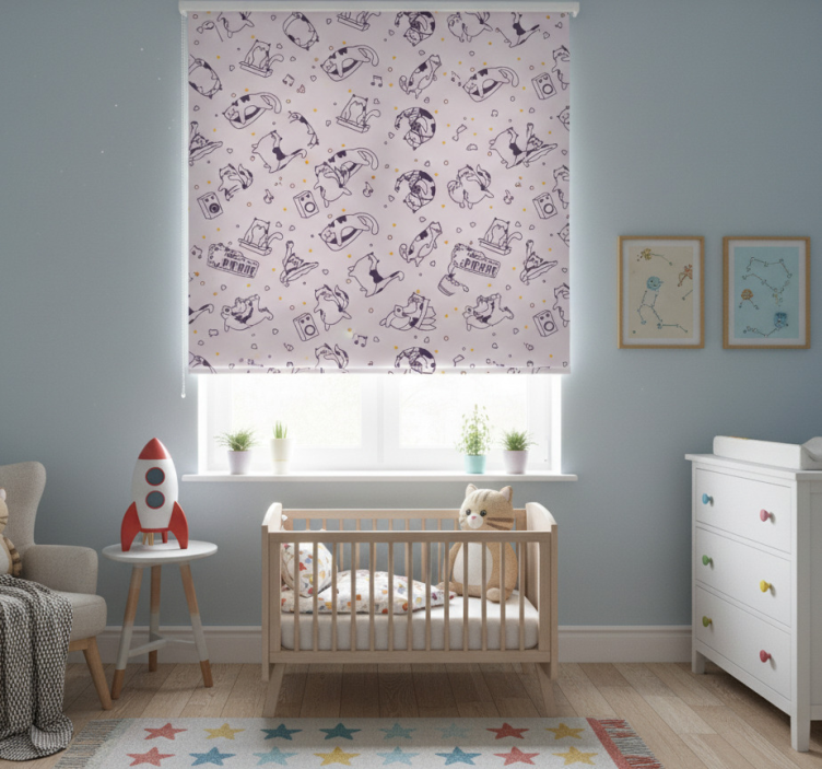 Kinderkamer rolgordijn kattenmuziekband patroon