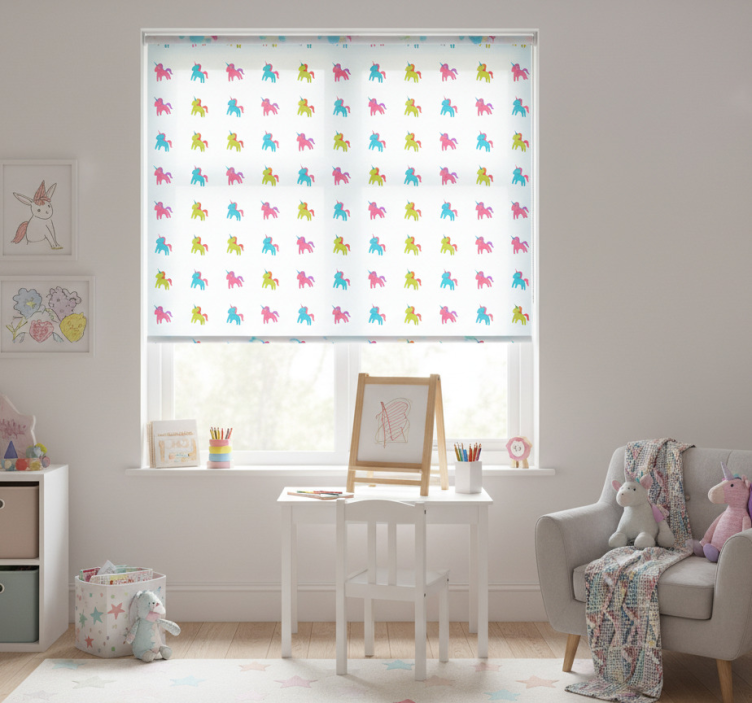 Breng magie in de kinderkamer met ons Kinderkamer rolgordijn eenhoorns op blauwe achtergrond! Dit betoverende ontwerp toont schattige eenhoorns die vrolijk over een prachtige blauwe lucht galopperen. Het rolgordijn is niet alleen een functioneel element, het is ook een prachtig decoratief stuk dat de fantasie van je kind zal prikkelen. De combinatie van vrolijke kleuren en een speelse sfeer maakt het de ideale keuze voor elke kinderkamer. Het kinderkamer rolgordijn zorgt ervoor dat je kindje zich kan omringen met een droomachtige omgeving waar ze zich veilig en gelukkig voelen!