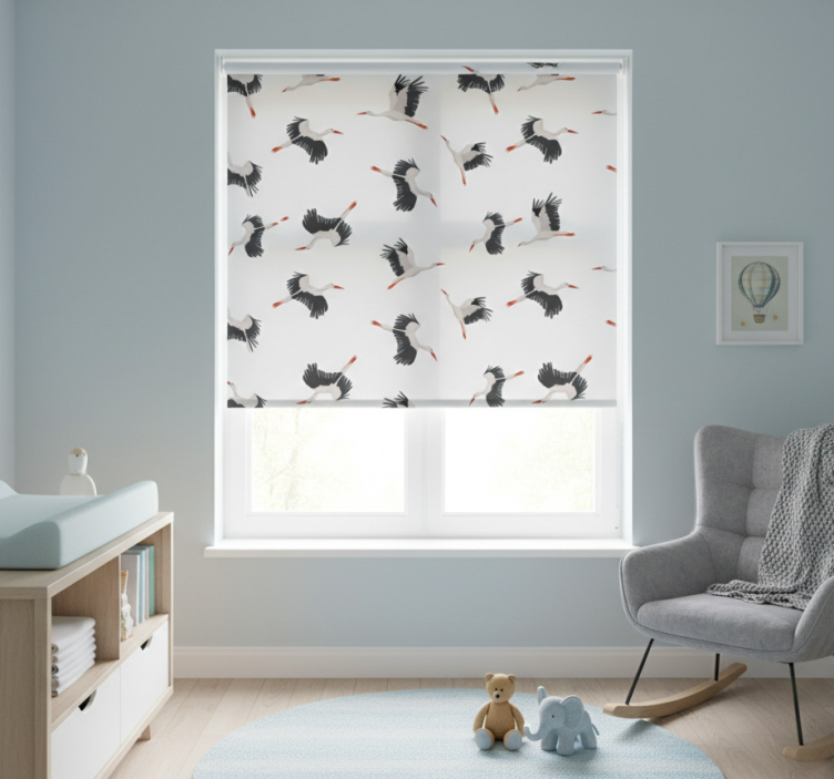 Kinderkamer rolgordijn met vliegende ooievaars patroon
