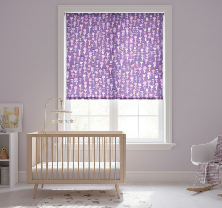 Kinderkamer rolgordijn paars abstract bloemenpatroon