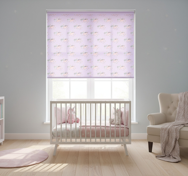 Kinderkamer rolgordijn roze pastel eenhoorn patroon