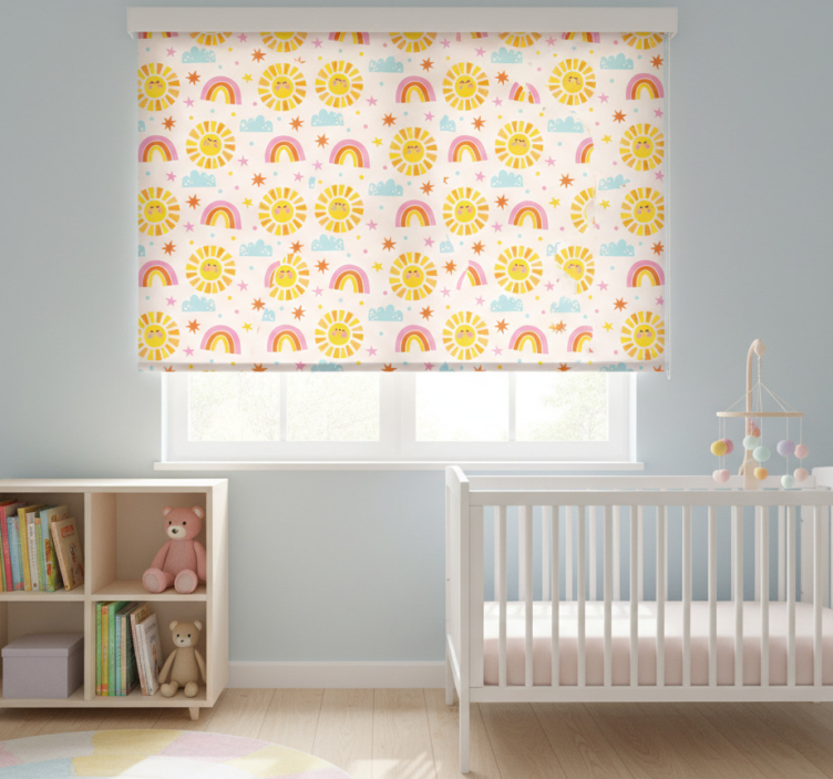 Kinderkamer rolgordijn roze regenboog patroon