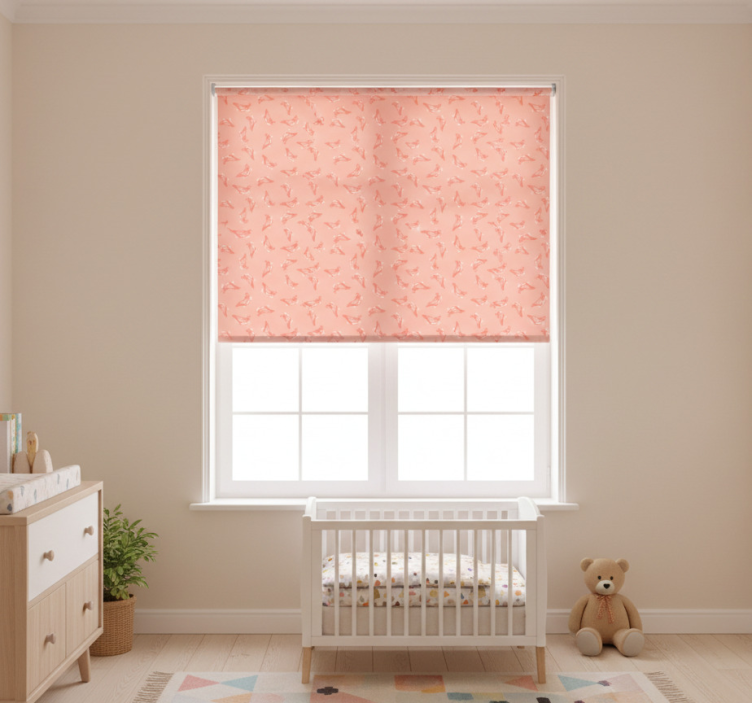 Kinderkamer rolgordijn roze vogels patroon
