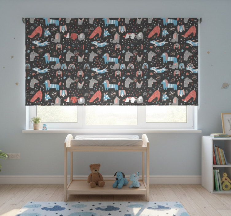 Referentienummer: E6905Breng een speelse en vrolijke sfeer in de kinderkamer met ons Kinderkamer rolgordijn schattige honden illustratie. Dit betoverende rolgordijn is versierd met schattige hondenillustraties die het decor van de kamer een levendige uitstraling geven. De combinatie van levendige kleuren en schattige ontwerpen maakt het een ideale keuze voor elke kinderkamer. Bovendien biedt het rolgordijn praktische voordelen, zoals het regelen van de kamertemperatuur en het bieden van privacy wanneer het omlaag is!
