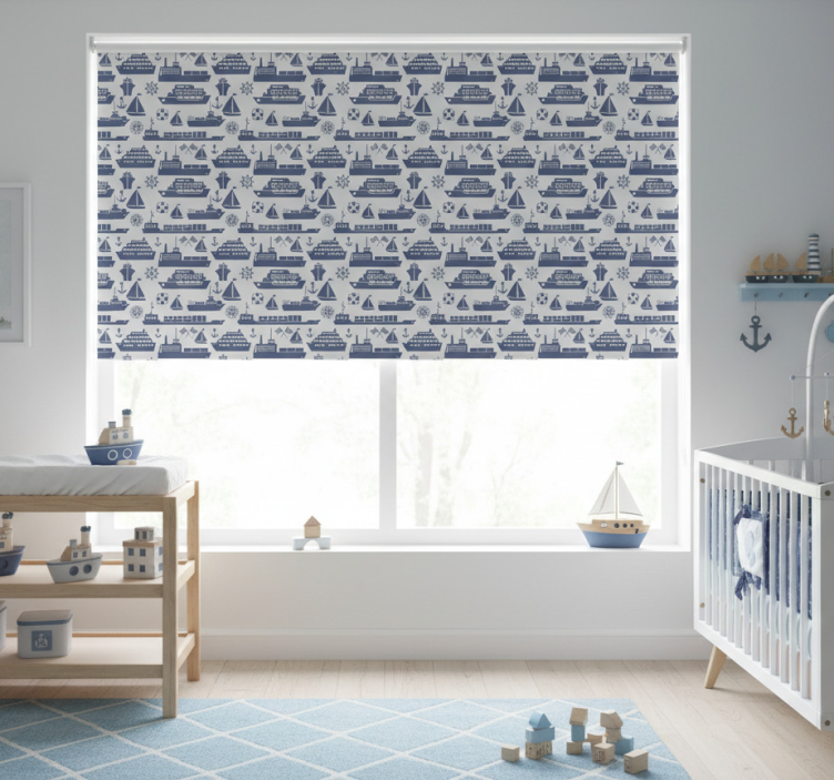 Kinderkamer rolgordijn verschillend blauw bootpatroon