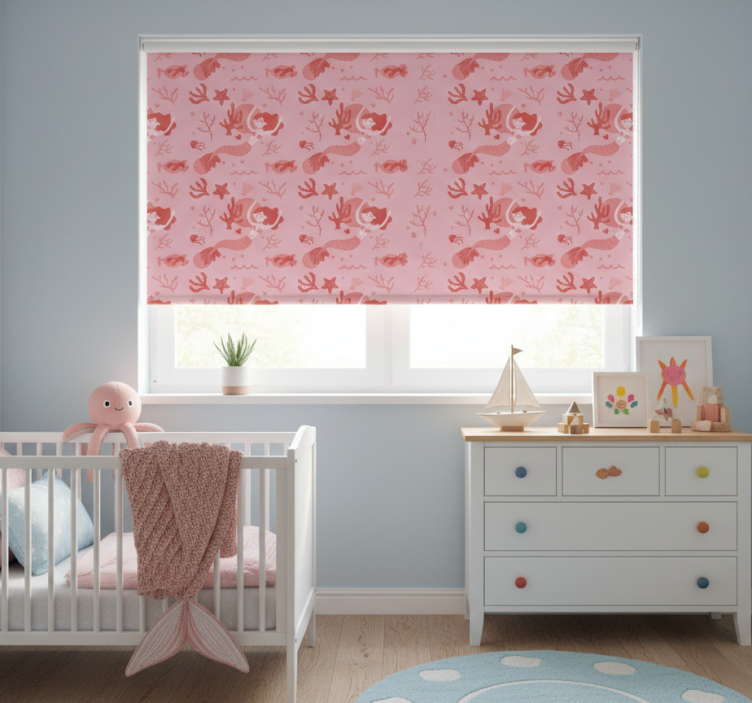 Kinderkamer rolgordijn zeemeermin roze zwaaiend en lachend