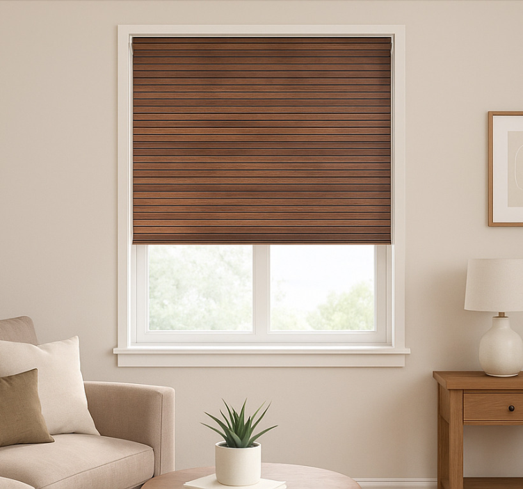 Patronen rolgordijn parallel walnoothouten lamelen
