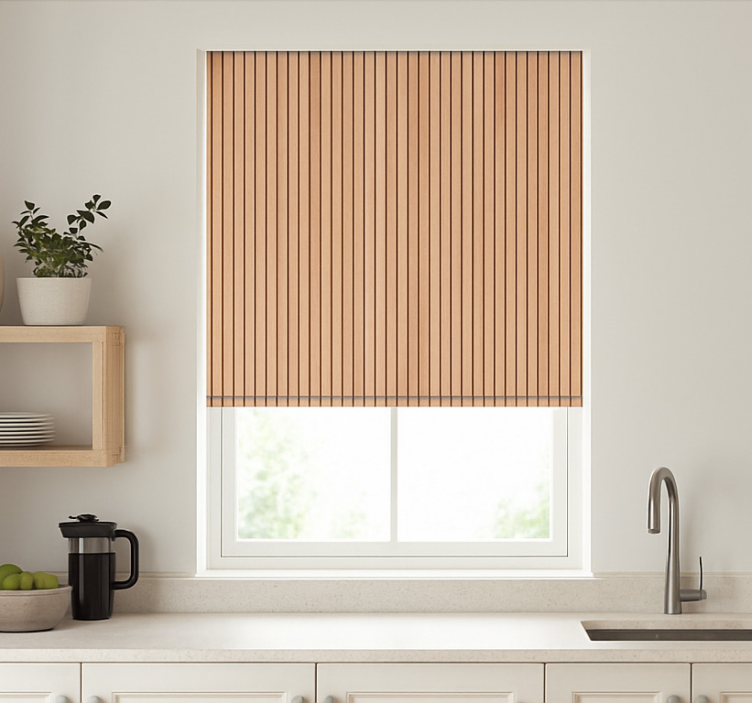 Patronen rolgordijn verticale lichte cederlatten