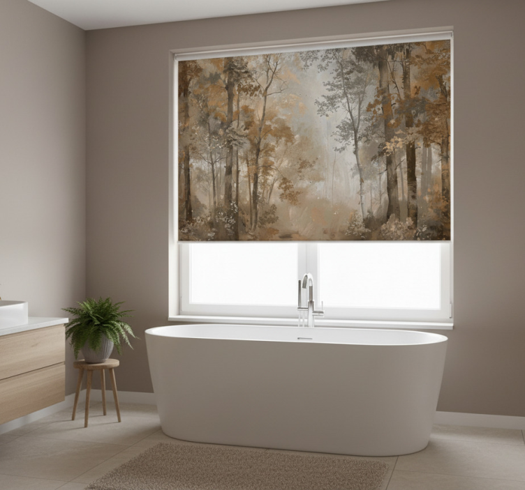 Breng de magie van het herfstbos in uw huis met ons rolgordijn bomen amber herfstbos. Dit prachtige ontwerp toont een weelderig landschap met amberkleurige bomen die in de herfst hun bladeren verliezen. De warme tinten van de bladeren creëren een gezellige en uitnodigende sfeer die perfect is voor elke kamer. Het rolgordijn is niet alleen een visueel hoogtepunt, maar ook een functioneel element dat uw interieur verbetert!