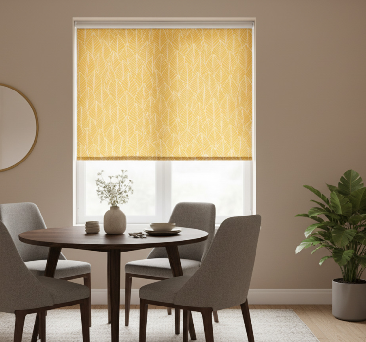 Referentienummer: E8227Rolgordijn geel bladerenpatroon